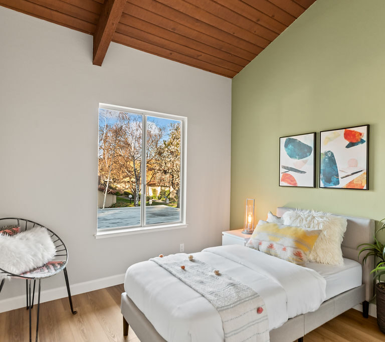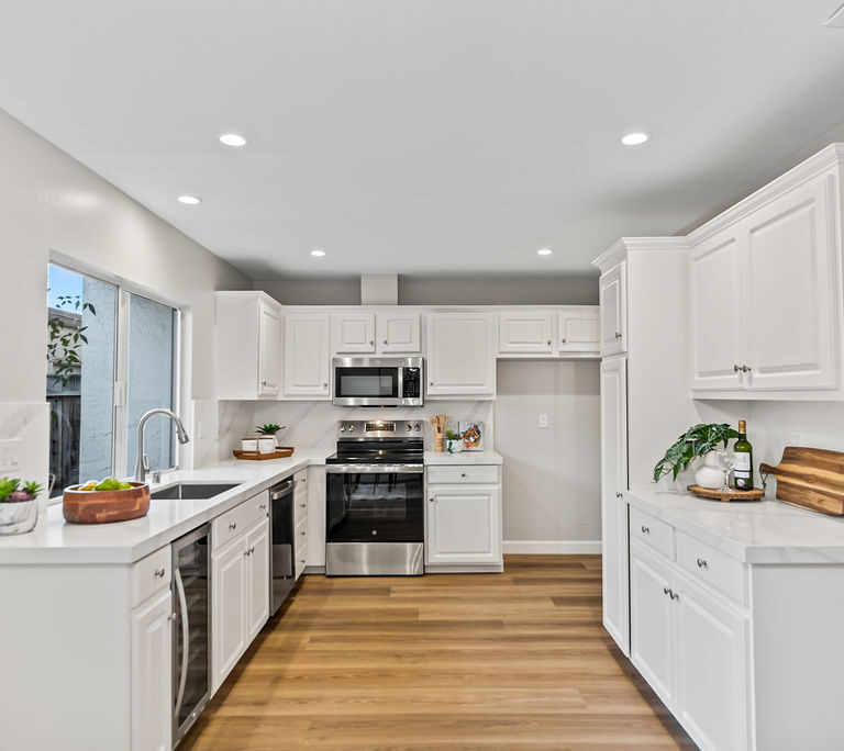 Enter your home to a welcoming living room where natural light from large windows dances on the floors. Enjoy spacious living in the dedicated dining area and kitchen that boasts new quartz counters, stainless steel appliances, beverage refrigerator, and ample storage. Savor the Bay Area’s stunning year-round weather on your private patio.